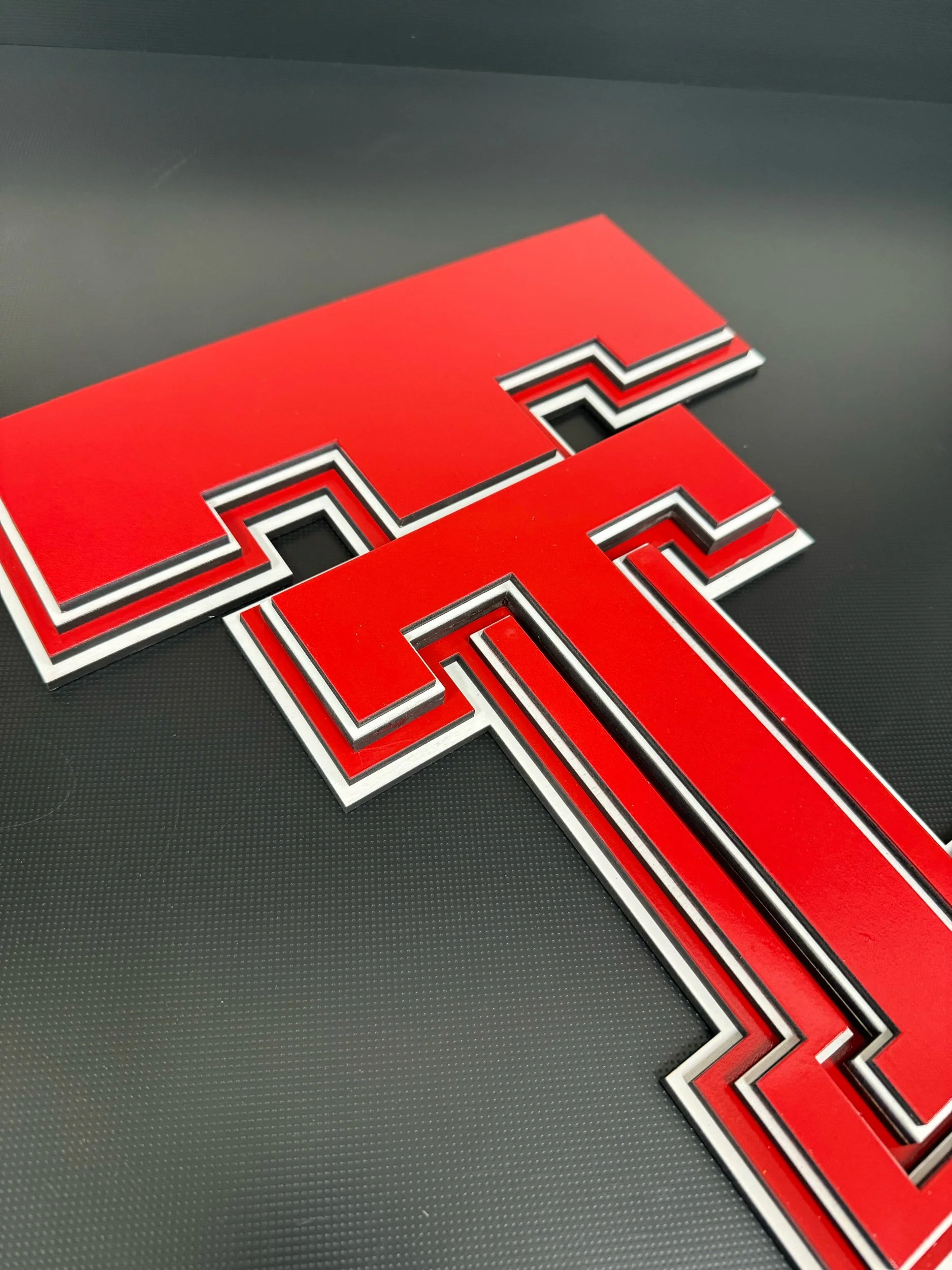 Bring Texas Tech pride to your space with a unique twist. This 16” stacked vintage Double T is handcrafted from wood and designed to stand out in any office, shop, or game room.